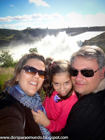 Tivemos tanta sorte que o vertedouro estava aberto naquele dia, o que não é comum. Mais uma cascata de água que fez com que a Valentina ficasse deslumbrada. A vazão aqui, segundo comentaram, é superior à vazão das Cataratas. É muita água mesmo.